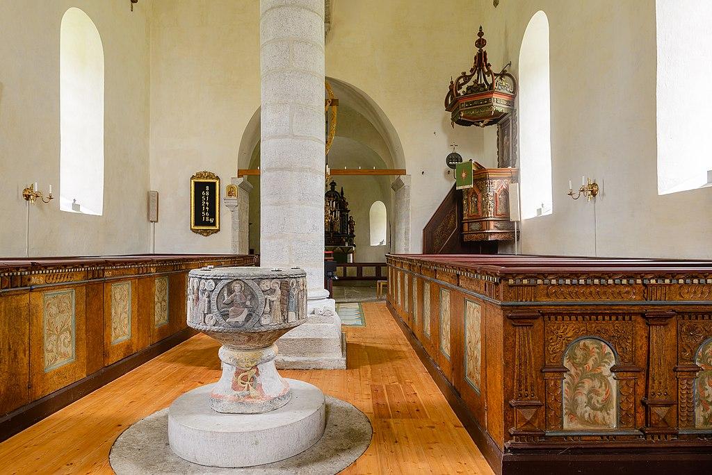 Vall Church was built in the 13th century. It houses a baptismal font is from the 12th century, an altarpiece is from the 17th century and a pulpit from 18th century.