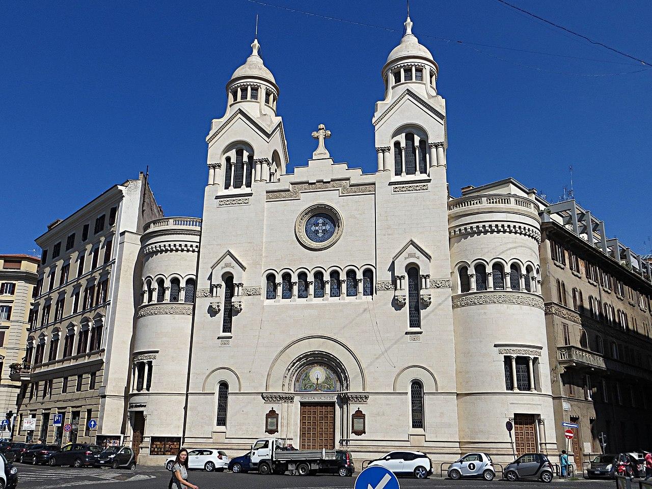 The Waldensian temple in Piazza Cavour was built between 1911 and 1913 and houses the headquarters of the Waldensian theological faculty. The construction of this second Waldensian temple in Rome (the first being the Waldensian Temple of Trevi) was made possible by the American widower John Stewart Kennedy, who in 1910 bought land on behalf of the Waldensian Evangelical Church. The church is the work of engineer Emanuele Rutelli and architect Paolo Bonci and is an eclectic mix of decorative elements from neo-Romanesque and Art Nouveau architecture.