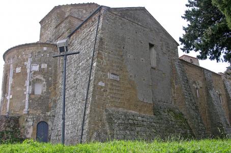 Acquapendente Cathedral is a 10th century Romanesque basilica and historically belongs to the Benedictine order. It is dedicated to the Holy Sepulchre because it preserves a blood-stained stone which, according to tradition, comes from the Holy Sepulchre in Jerusalem. In medieval times, the basilica was frequented by pilgrims and crusaders, being situated on the Via Francigena towards Rome. It became a cathedral in 1649 and has undergone many embellishments over the centuries. The façade of the building is the result of restoration works promoted in 1746 by Pope Benedict XIV.
