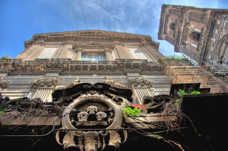 Santa Maria del Carmine Maggiore is one of the largest basilicas in Naples and a fine example of Neapolitan Baroque style. The church was founded in the 13th century by Carmelite friars who had been expelled from the Holy Land during the Crusades, and who probably arrived in the Bay of Naples on Amalfi ships. The present facade dates from 1766 and was designed by Giovanni del Gaizo to replace the old one, which had been ruined by lightning and above all by the earthquake of 1456. Although it was built at the same time as the church, the bell tower is first mentioned in 1439. It was damaged and rebuilt several times and took on its present appearance in the first half of the 17th century.