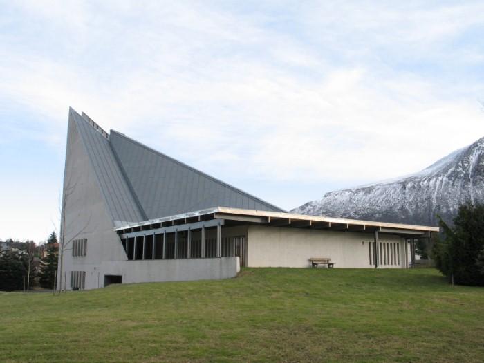 Brattvåg Church is a modernist church that was built in 1977 according to the design of architect Aksel Fronth.