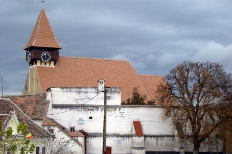 The rest of the church was demolished in 1805, the resulting material being used to erect a new building inside the village. The neoclassical hall church is covered with penetrated barrel vault and has a bell tower on the western side. The neoclassical altar was built in 1877 by Fritz Reuschel from Sebeş and the Rieger company built the organ in 1895.