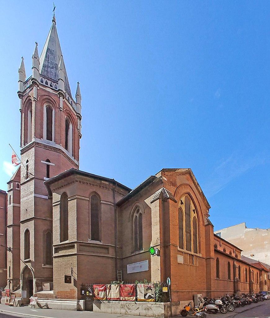 All Saints' Church was built between 1882 and 1887 on a former convent for the Anglican community. The famous English architect George Edmund Street (1824-1881) drew up plans to build a new church with an adjoining vicarage. George Edmund Street died in 1881 and his son Arthur Edmund Street took over the supervision of the project. The steeple, which was never completed at the time of construction, was added in 1937. The church is now also served by the Old Catholic community.