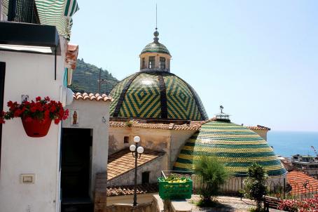 The church of San Pietro dates back to the end of the 10th century but its neoclassical structure is due to reconstruction in the 17th century. The bell tower, which sticks to the facade of the church, dates back to the 11th century. The church is typical of the Amalfi coast for its dome covered with coloured tiles.