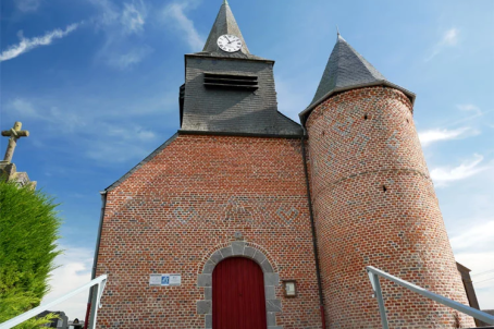 Église de la Nativité-de-la-Sainte-Vierge is located in La Flamengrie, a Commune Rural with 1.100 inhabitants about 12 km west of the town of Fourmies in the Département Aisne in the région Hauts-de-France. It was first build between 1130-1150.