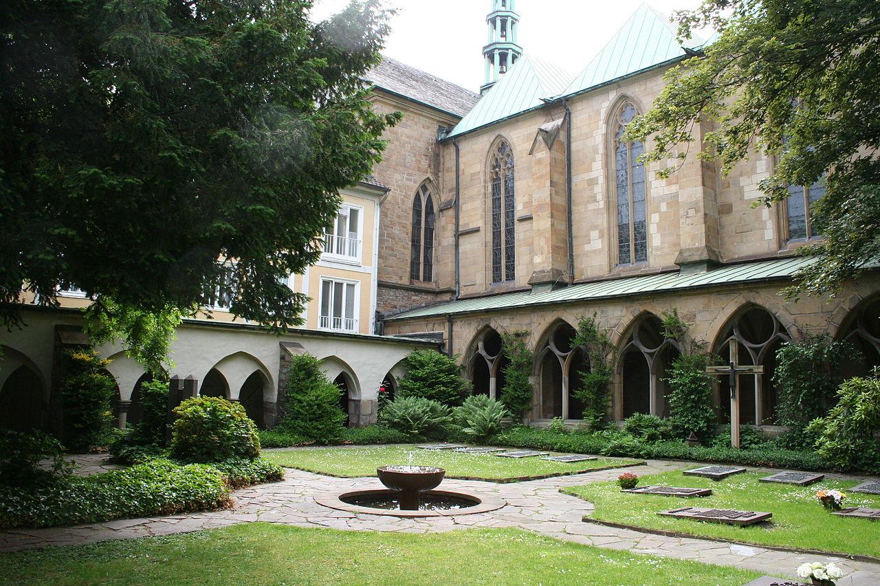 Essen Cathedral was once the collegiate church of Essen Abbey, founded around 845 by St. Altfrid, Bishop of Hildesheim, around which the city of Essen developed. The present building, which was rebuilt after its destruction during the Second World War, is a Gothic church, built after 1275 from pale sandstone. The octagonal-shaped Western Massif and the crypt are survivors of the pre-Romanesque Ottonian building that stood here. To the north of the church is a cloister which was once used by the abbey. The cathedral is famous for housing the Golden Madonna of Essen. Dated around the year 980, it is both the oldest known sculpture of the Madonna and the oldest free-standing medieval sculpture north of the Alps.
