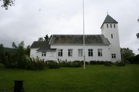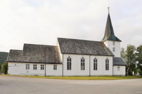 Evenes Church is a wooden church in the Danish manor house style inaugurated in 1800. Around 1250, Håkon Håkonsson built the first church on the spot. A new church was built on the site in 1677. Both churches were on the same site as the present church. The baptismal font of the present church comes from the first church on the site, dating from the 13th century.