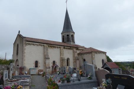Petit édifice roman, formé d’une nef de quatre travées et terminé à l »’Est par une abside en hémicycle. Le deux travées orientales et l’abside qui ouvre par un arc en plein cintre peuvent appartenir à la fin du XIe siècle ; les deux autres sont postérieures, et leurs murs latéraux sont renforcés intérieurement de deux arcades, en plein cintre, à double rouleaux, entre lesquelles s’élèvent les pilastres destinés aux doubleaux du berceau brisé. Des chapiteaux figurés couronnent ces pilastres. Deux chapelles modernes sont accolées au sud de la nef. Au nord, de lourds arcs-boutants ont été lancés à l’époque gothique pour consolider le mur gouttereau. La porte de façade, sans sculptures, ouvre dans un avant-corps à deux rampants surmonté d’une croix. Le clocher rectangulaire, du XIIIe siècle, élevé en avant de l’abside, présente un étage percé sur chaque face de deux étroites baies brisées retombant sur de courtes colonnettes et séparées par un pilastre ; les chapiteaux sont ornés de crochets, et les bases serties d’un tore débordant encadré de griffes. Une petite ouverture en forme de losange est ménagée au milieu de chaque face au-dessus de l’extrados des baies.