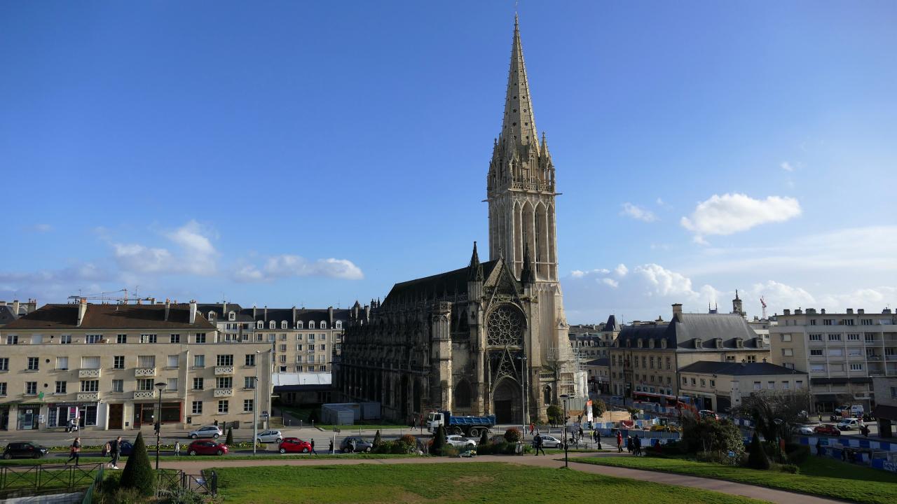 Au XIIe siècle, une première église romane est construite. Au siècle suivant, l’église est prolongée par six travées et terminée par un chevet plat. Un tour-clocher est aussi ajouté. Au XIVe siècle, la nef romane est refaite dans un style gothique. La façade est reconstruite et le clocher est surélever par l’ajout d’une flèche. Par la suite, au XVe siècle les collatéraux sont élargits tout comme les chapelles latérales. L’ensemble de l’église est remanié dans un style gothique flamboyant. A la fin du siècle, le chevet plat est remplacé par une abside couronnée par des chapelles rayonnantes. En 1944, un obus tombe sur le tour-clocher s’effondrant sur la nef.