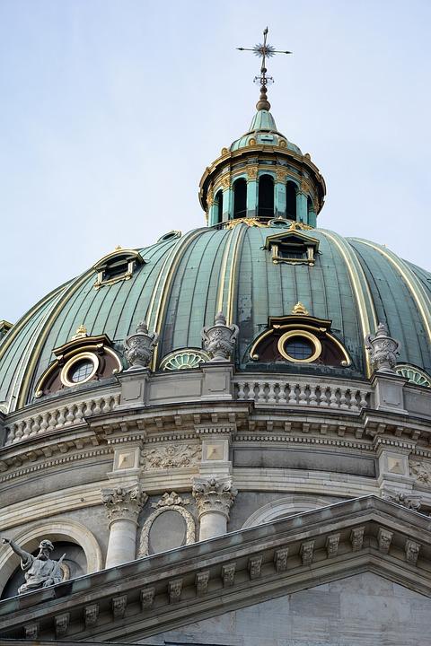 The marble church, or Frederiks Kirke, was built between 1749 and 1894. Ironically enough for this Evangelical Lutheran church, the Rococo style building was modeled on St. Peter's Basilica.