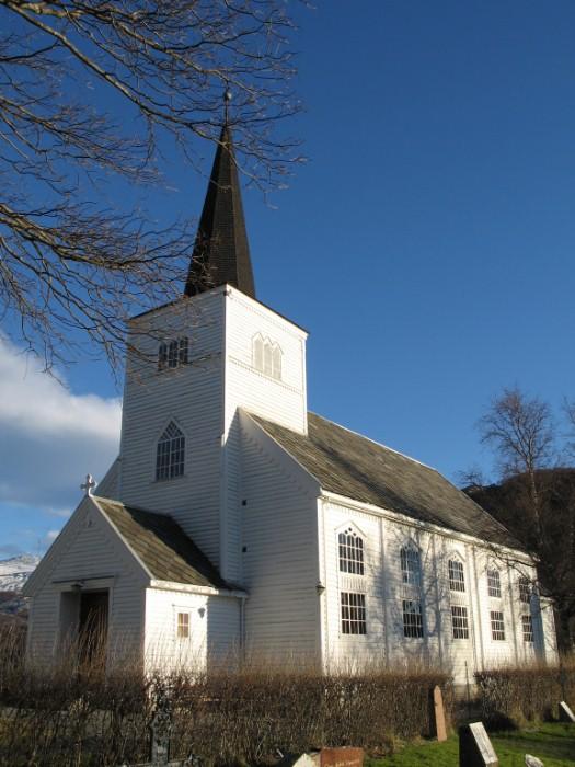 Hamnsund church is a wooden church that was built in 1875. The church has a long plan and was designed by architect Brinchmann.