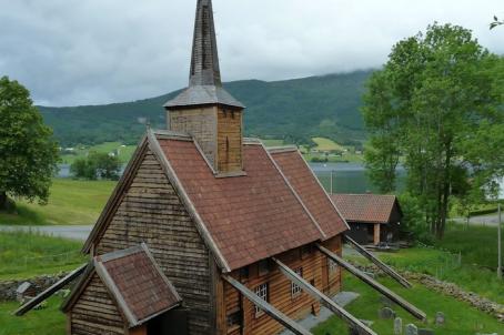 Rødven's Stave church was built around 1300, but its choir dates from the 18th century. The sacristy, porch and eaves are also later additions. Inside, the church is characterised by restorations from the 17th and 18th centuries. When the site's new church was consecrated in 1907, the Society for the Preservation of Ancient Norwegian Monuments took over the moat church.