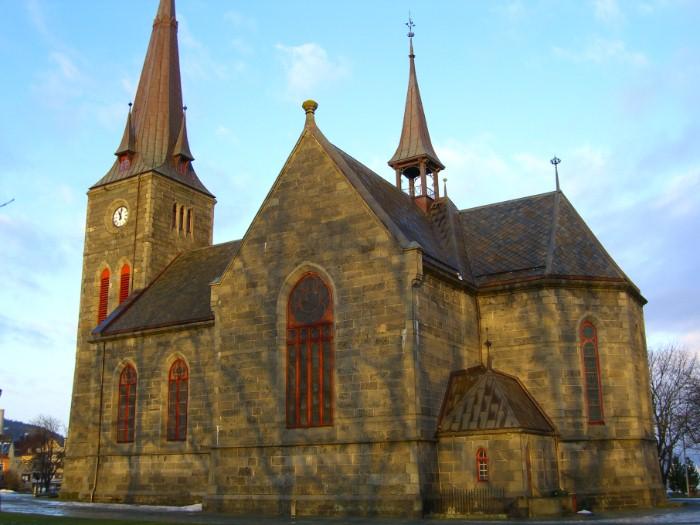 The Church of Our Lady of Trondheim is a long stone church dating from around 1200. The church was rebuilt after fires in the 16th, 17th and 18th centuries. Among other things, the nave was enlarged in 1686 and the present tower was built in 1742. The choir and the eastern part of the nave are remains of the original building.