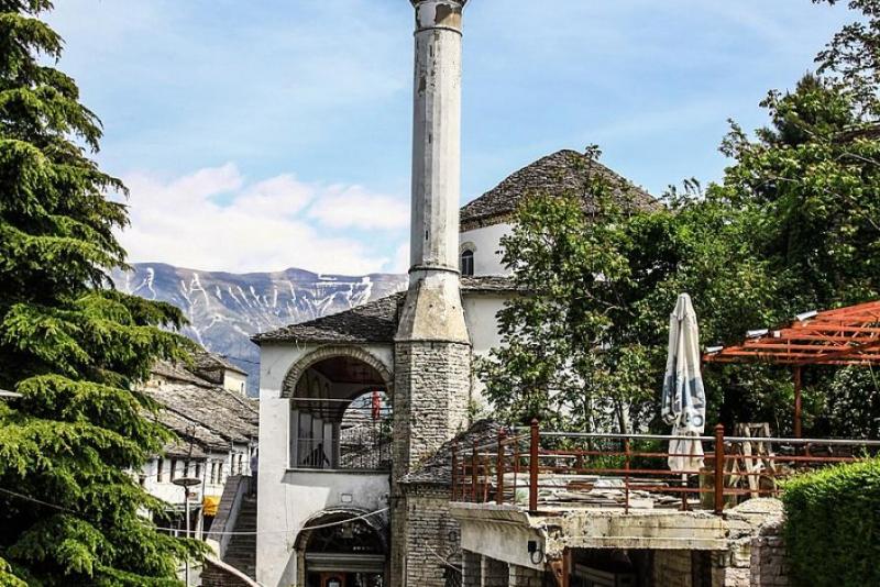This mosque was built in 1757 and is currently considered a cultural monument. Also known as Memi Bey Mosque, it is located in the old bazaar of Gjirokastër, a historic city with several important Islamic sites. It is the only one out of the city's thirteen mosques to have survived the demolition by the Communist regime.