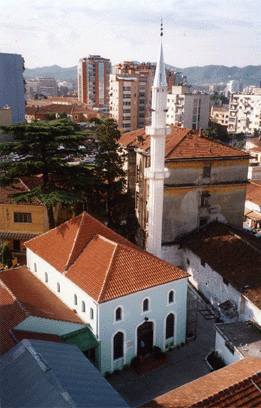 The Kokonozi Mosque, also known as the Mahmoud Agha Kokonozi Mosque or the Mosque of the New Bazaar, is a historic mosque dating from the mid-18th century. First mentioned in 1775, the mosque was extensively restored in 1853 and 1933. The Kokonozi Mosque is one of the few Muslim places of worship in Tirana that survived the Hoxha dictatorship and was not completely destroyed under the atheism decreed by the state in 1966. The mosque served as a storage room for food and tobacco. The mosque was reopened on 18 February 1991.