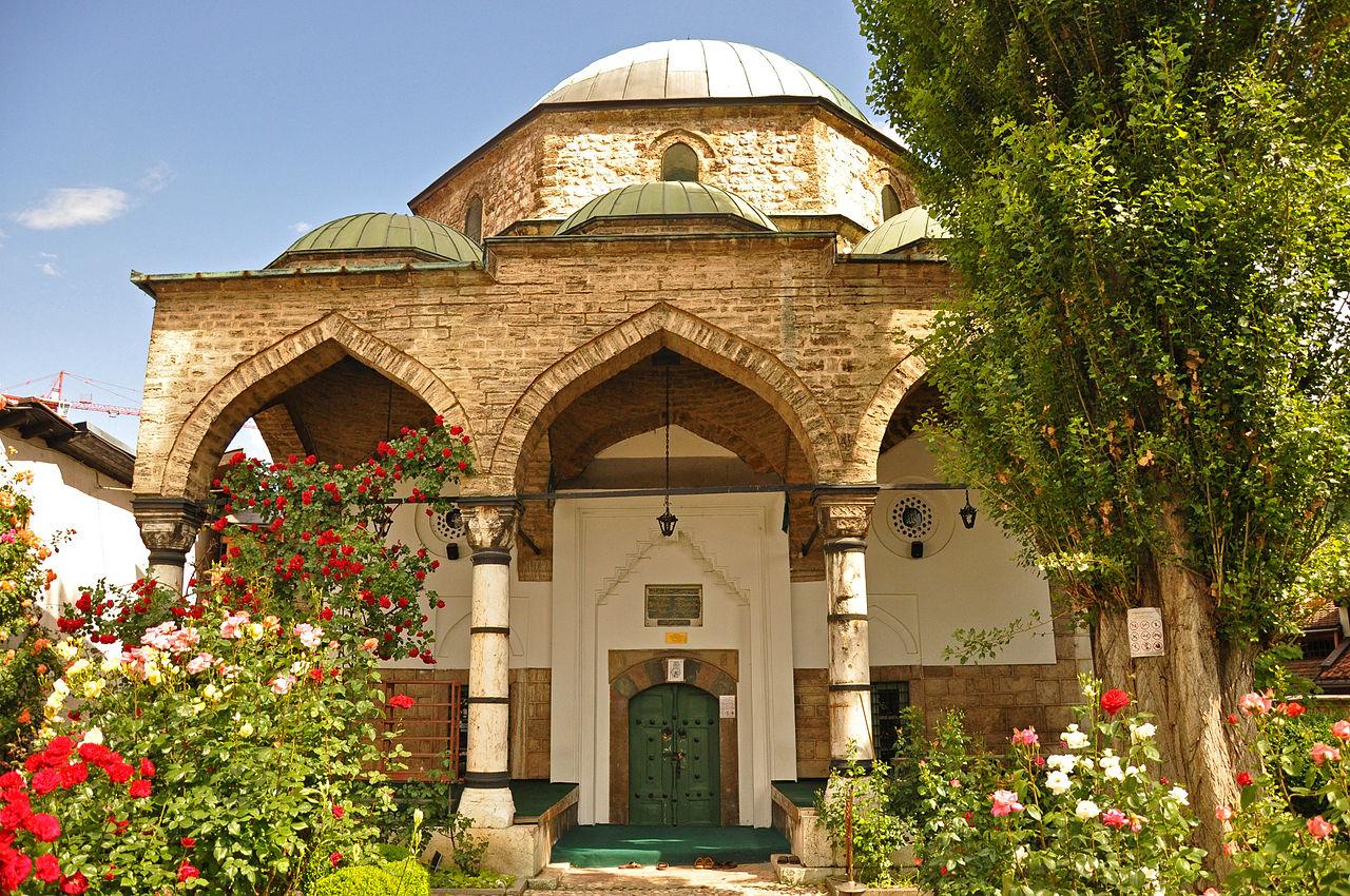 The Baščaršija mosque ("Marketplace mosque") was built in 1528. Originally, the Baščaršija mosque had a wooden dome that burned in a fire in 1697, after which the present mosque was built. In 1762, the mosque was repainted by Mehmed-pasha Muhsinović. The mosque also had to be rebuilt after the Second World War.
