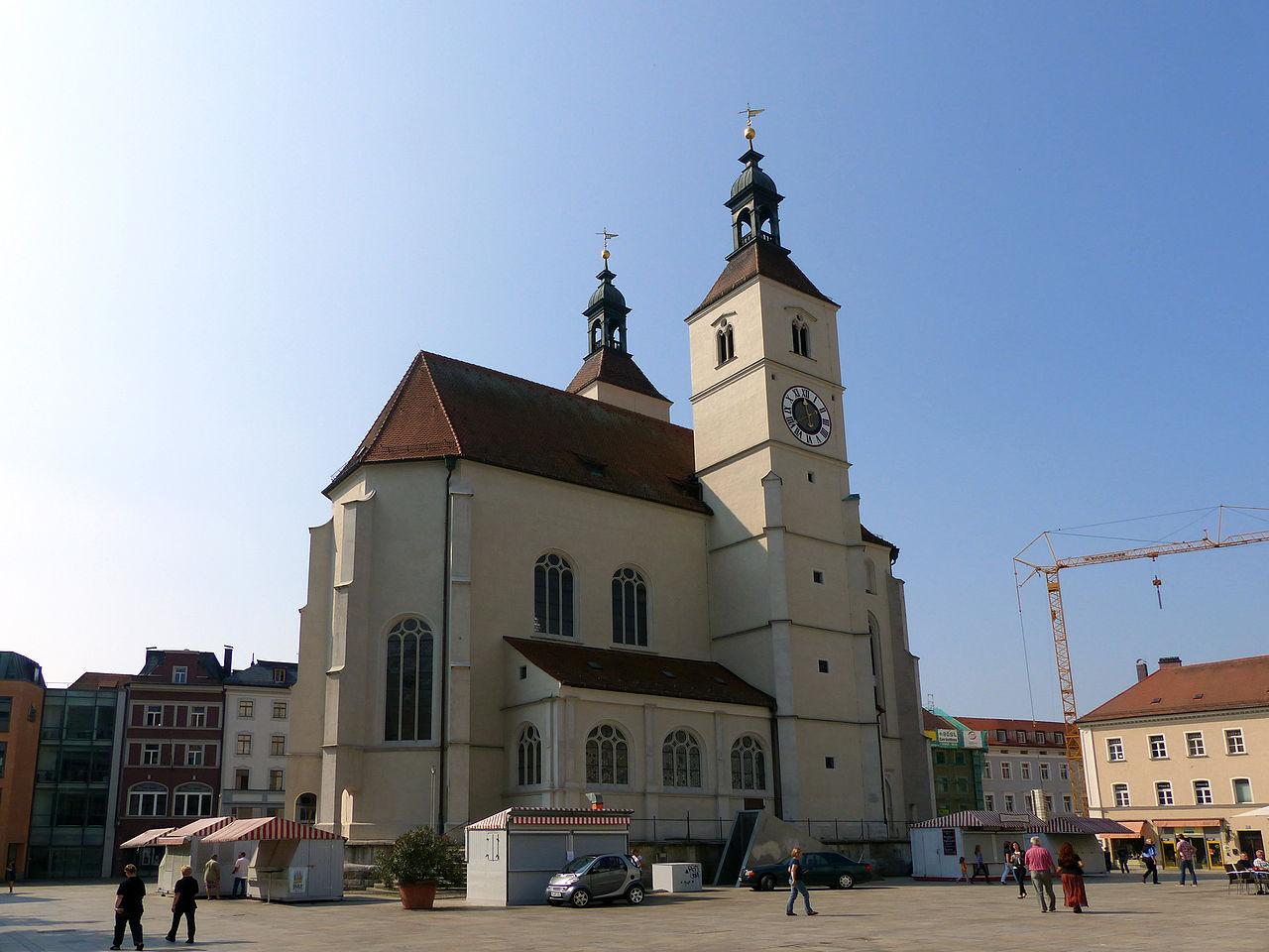 Regensburg's new parish church was built between 1519 and 1540 on the remains of a former synagogue in Regensburg's Jewish quarter. The expulsion of the Jews from Regensburg in 1519 made it possible to erect the new church, which was intended to be the centre of a Marian pilgrimage. In 1542, however, Regensburg converted to the Protestant-Lutheran denomination and the city council made the church the first Protestant parish church in the city.