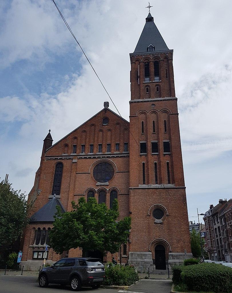The construction of Notre-Dame du Sacré-Coeur church was requested by the neighbourhood's residents and built from 1925 to 1928 by architect Édmond Serneels. Designed in a neo-Romanesque style, the proportions were changed during the second phase of construction; due to lack of money, the length of the building was reduced.