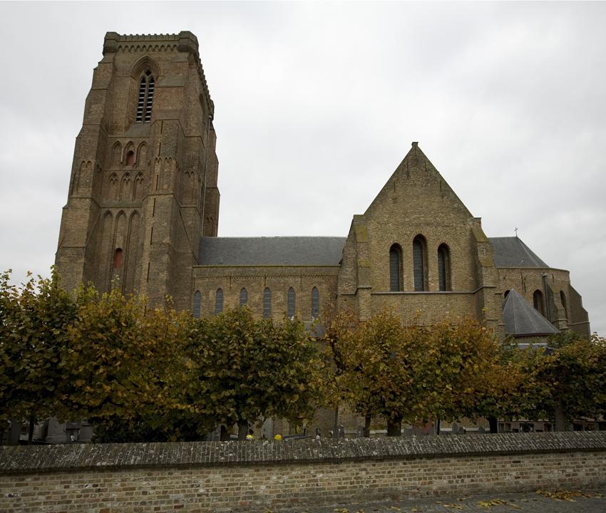 In 1227, a chapel of Saint Catherine was mentioned. The chapel has probably been incorporated in the later Saint Margaret's Church. This church was first mentioned in 1477. Its tower was an important beacon for shipping. the church suffered from the Iconoclasm in the late 16th and early 17th centuries. The building was restored in 1613. In 1796 the church was confiscated by the French administration and returned to the parish in 1801. The church was enlarged in 1852, according to plans by P. Buyck and in 1905 a new choir section was built. The building was severely damaged due to the Second World War. A new church was built from 1955 until 1958. The tower structure could be preserved after the war and became a classified monument in 1938. The church was rededicated to the Immaculate Heart of Mary and Margaret Church in 1958.