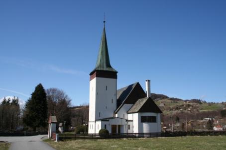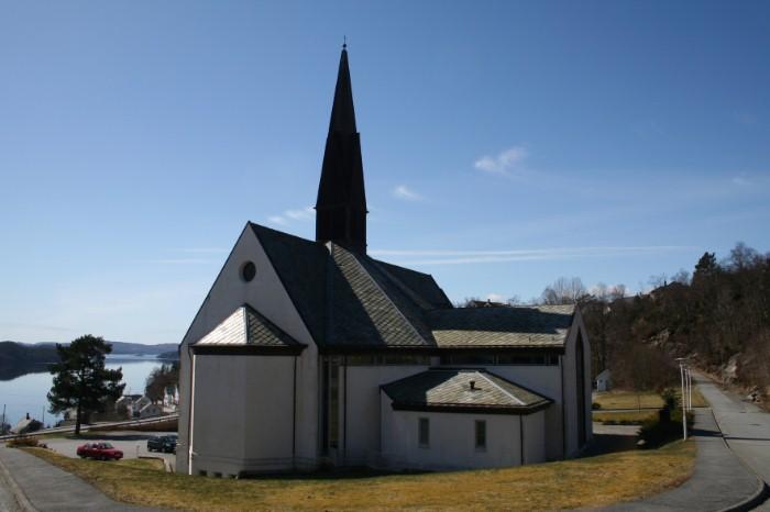 The Skjold Church, dating from 1998, is a brick 'working church' with an octagonal hall. The church was designed by architect Nils A. Vikanes, was built after the old city church, a wooden long church from 1887, was burnt down on 13 September 1992.