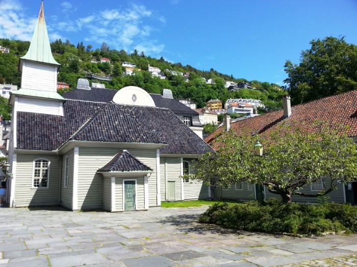 St. George's Church, or Hospitalskirken, is a wooden church built in a square shape, dating from 1706. The church was originally a church for lepers, so today the church is part of the Leprosy Museum. It is also used for some services in Swedish and English.