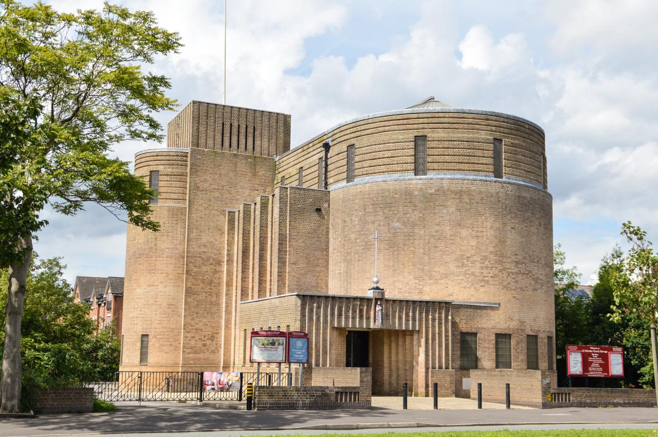 St Nicholas church is a Grade II* listed building. It was the first church designed by the architect Nugent Francis Cachemaille Day. In 1931, the foundation stone was laid and the ‘old' hall was built and used for services. In 1932 the building was completed at a cost of £11,600. From 1963/64 an extension was added to create choir stalls to the rear of the building.