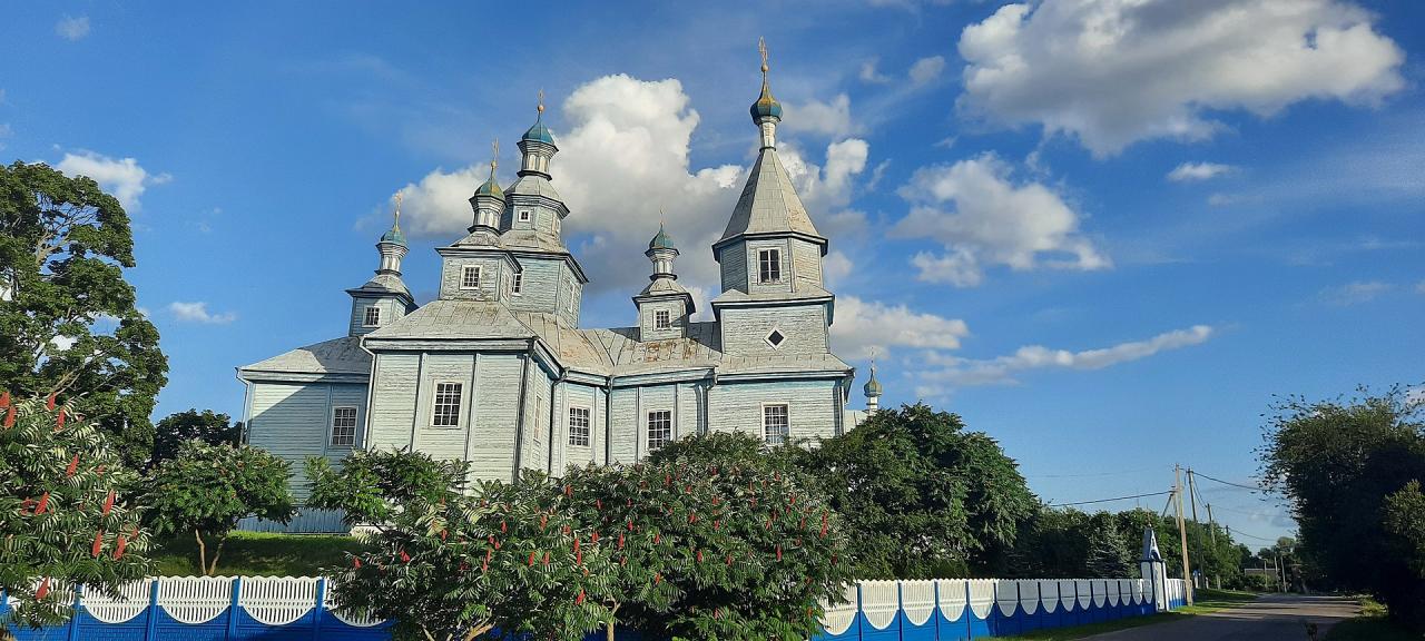 St. Nicholas' Church is a wooden Orthodox church built from 1818. The church has a central pyramidal composition and consists of five log cabins arranged in a cross plan, with a bell tower above the entrance. A belfry is placed separately from the church.