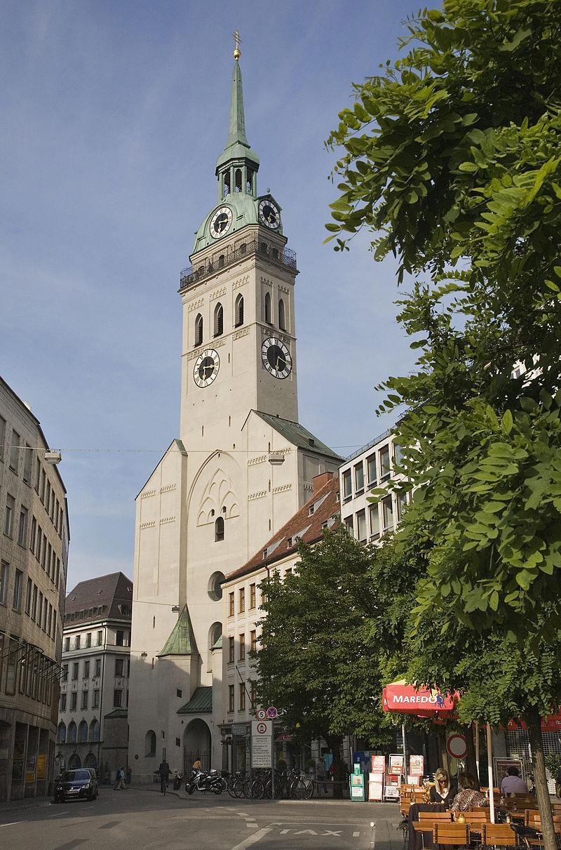 St. Peter's Church and one of Munich's monuments. It was inaugurated in 1368 on the site of a church older than the city itself. The building is famous for its tower called "Alter Peter" by the locals.