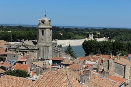 The church of Notre-Dame-la-Major is a Romanesque-Gothic church originally consecrated in 452, during the third Council of Arles, by Archbishop Ravennius, as attested by the inscription engraved on the façade of the chapel of Saint-Martin, which disappeared in 1592 during its renovation. The replacement of this first church on the same site by a Provençal Romanesque building, of which the three bays of the nave remain, began in 1152. In the 16th century, the choir and its apse were completely rebuilt. In 1579, the bell tower was rebuilt in its present form.