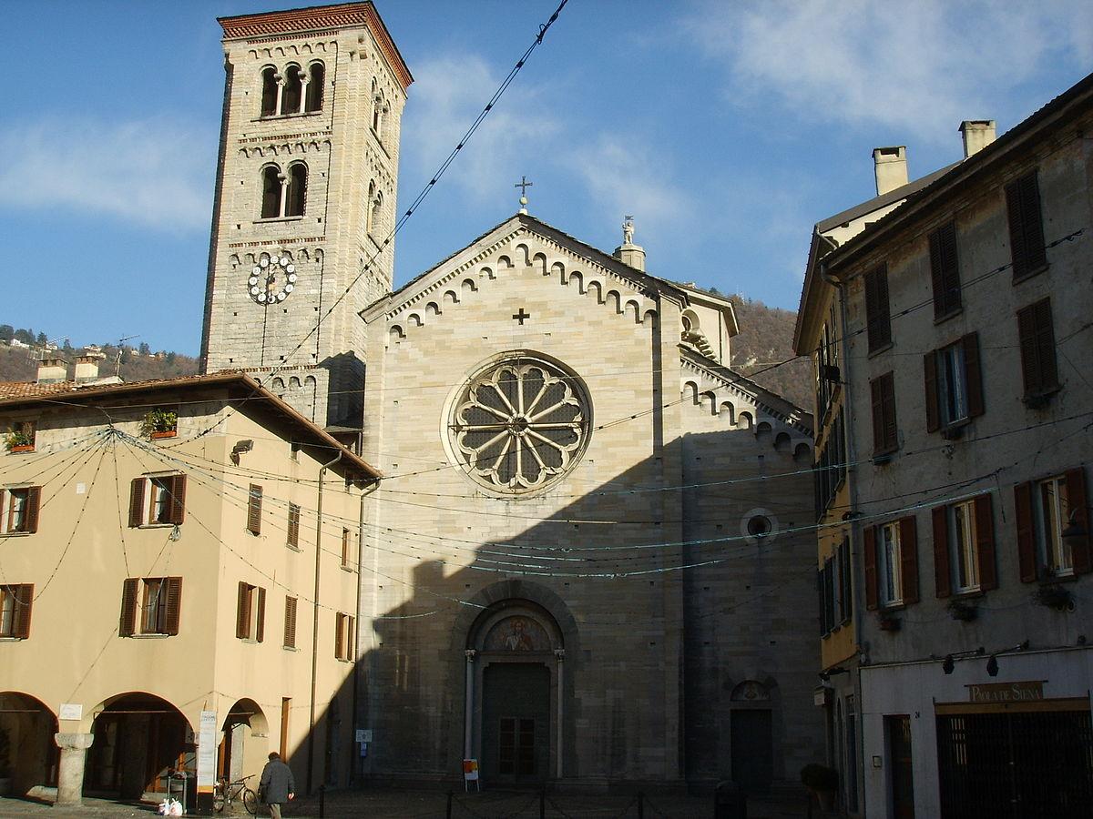 The Basilica of San Fedele was erected from 1120 on top of an early Christian church dating from the 7th century. The exterior of the church was restored to its Romanesque style in 1905 (bell tower) and 1914 (façade). The interior contains a splendid Lombard Romanesque choir, resembling the Aachen Palatine Chapel, with sculptural decorations.