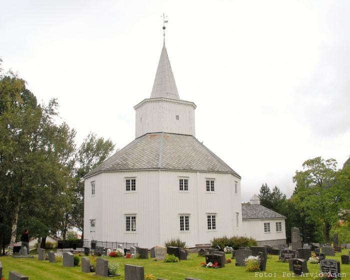 Buvik Church is an octagonal church consecrated in 1823. The building was designed using the Klæbu church (built by Lars Larsen Forsæth) as a model. Both churches have the same elongated octagonal shape and are almost the same size. The church lacked a sacristy from the beginning and received one in an extension on the east side in 1978. It originally had a round dome which was destroyed by lightning in 1861 and replaced by an octagonal bell tower. The red brick roof was replaced by Alta slate in 1920.