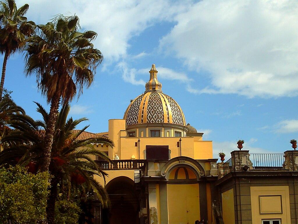 The church has a Latin cross plan with a single nave and a majolica-covered dome. In 1907, one of the wings destined for housing was converted into premises for the Federico II University of Naples. In 1932, other rooms were converted to house the Museum of Palaeontology of Naples.