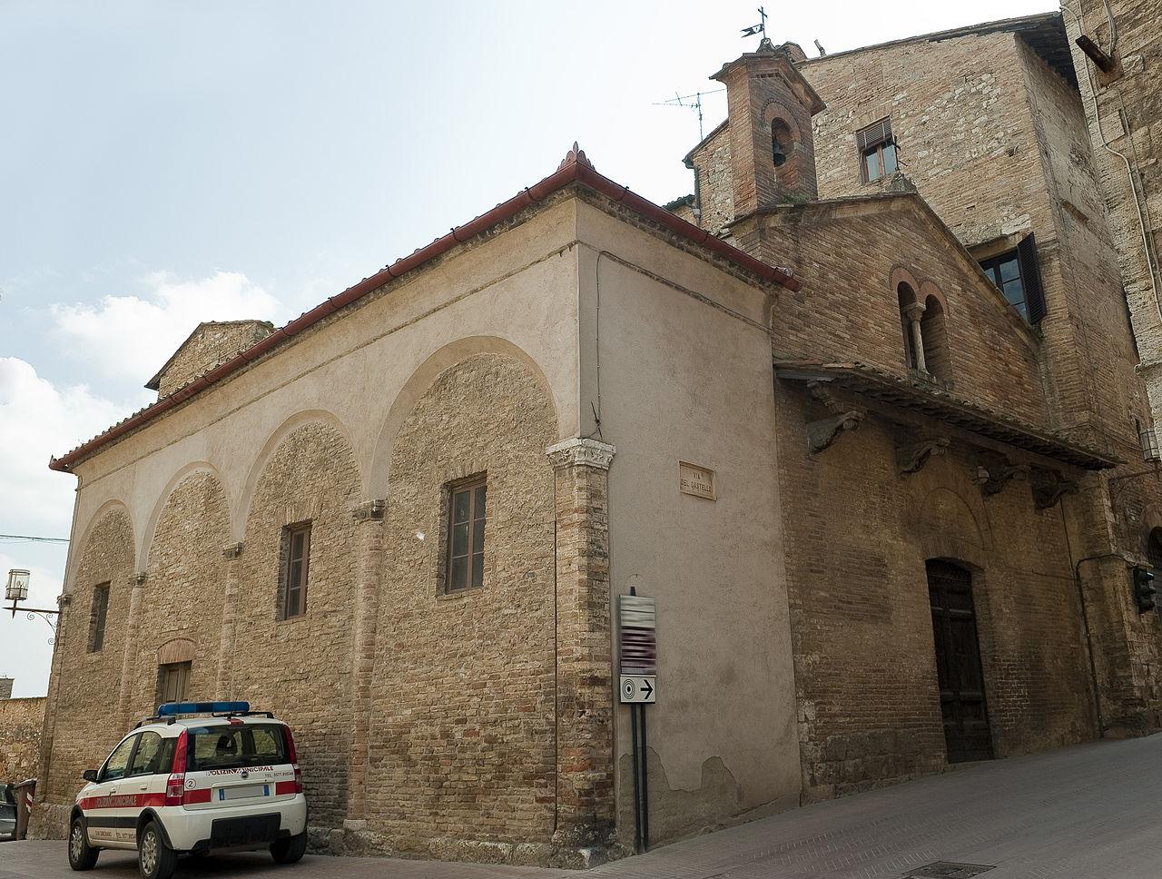 The church of San Lorenzo al Ponte dates from the mid-13th century. It is Romanesque and consists of a single nave covered by a wooden truss roof, with a vaulted presbytery. From the beginning of the 14th century, it had a small portico on the left side, or perhaps a simple roof, to protect the fresco of the Virgin and Child from the weather. It was precisely because of the popular devotion to this sacred image that it was decided, at the beginning of the 15th century, to build or extend the portico over the whole side of the church, thus forming a real oratory next to it. Both the church and the portico were extensively frescoed at the beginning of the second decade of the 15th century by the Florentine painter Cenni di Francesco di ser Cenni.