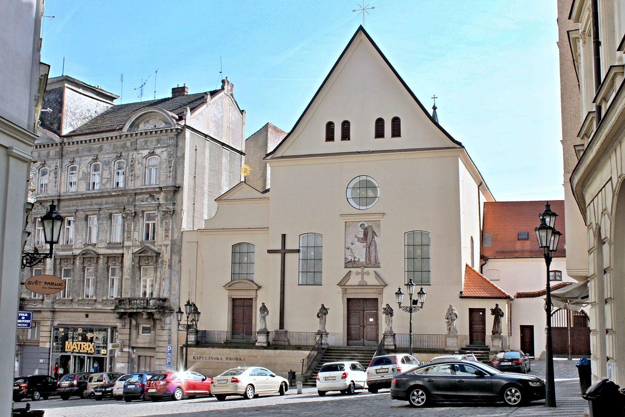 The church of the Founding of the Holy Cross, built between 1648 and 1656, is part of a Capuchin monastery in Brno. In the basement of the church, the Capuchin crypt contains the naturally mummified bodies of a hundred monks from the monastery.