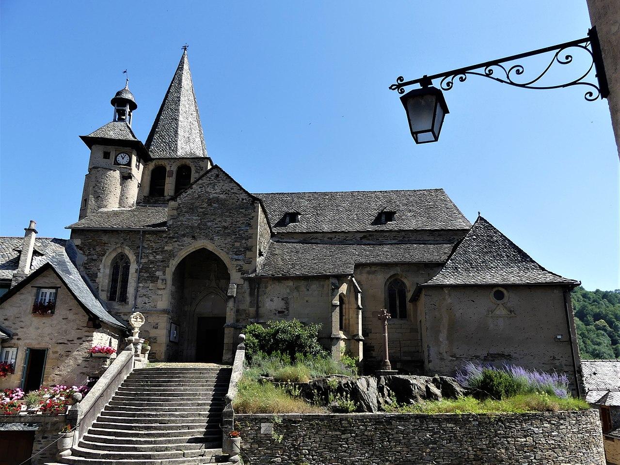 In flamboyant Gothic style, the building is oriented southeast / northwest with its portal to the southwest, preceded by a forecourt itself preceded by a staircase of about twenty steps. Inside, the single vessel is bordered by two side aisles and spans four spans. The pentagonal choir extends the central nave. The nave is covered with ribbed ribs decorated with keystones with the arms of the Estaing family.