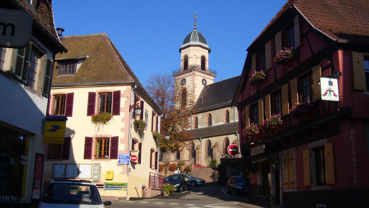Built in the 13th century in the Romanesque style, the church houses in the choir a remarkable altarpiece in carved wood dating from 1518. In front of the entrance to the sanctuary, in Romanesque style, is one of the most beautiful public fountains in Alsace.