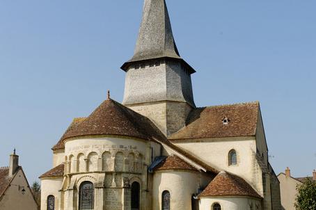 The Saint-Martin church is located in Nohant-en-Graçay, in the Center-Val de Loire region. From its twelfth century Romanesque origin, there remains only the tower and thick pillars, decorated with figurations of animals and heads on the capitals. The single paneled nave is followed by a vaulted choir on intersecting primitive ribs.