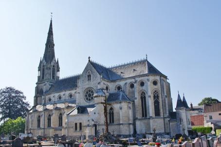 With the exception of the tower and part of the choir, the church was destroyed and rebuilt in 1863, on the same foundations, but with buttresses. The stained glass windows and the spire were restored after the Great War.