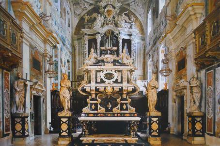 The church of Santa Maria dei Miracoli was built between 1487 and 1490, its magnificent carved façade was finished a little later in 1500. The walls and vaults of the church are also frescoed and stuccoed by different authors. Most of the murals were destroyed during the Second World War, when the building was severely damaged by bombardments that miraculously did not affect the facade and the precious sculptures of the first dome. In the following years, the sanctuary was rebuilt respecting the original building.