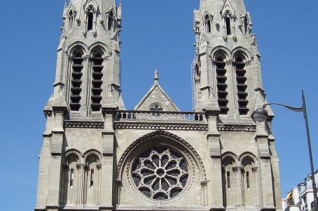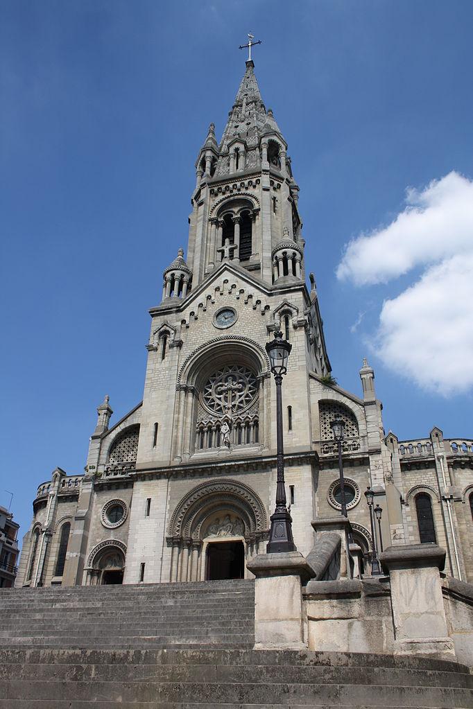 The church of Notre-Dame-de-la-Croix, built between 1863 and 1880, combines neo-Romanesque and neo-Gothic elements. The present church was designed by the architect Louis-Jean-Antoine Héret (1821-1899). It is also remarkable for its 78-metre high bell tower and the monumental staircase that precedes its façade. It is one of the largest churches in Paris (the 4th largest church in Paris).