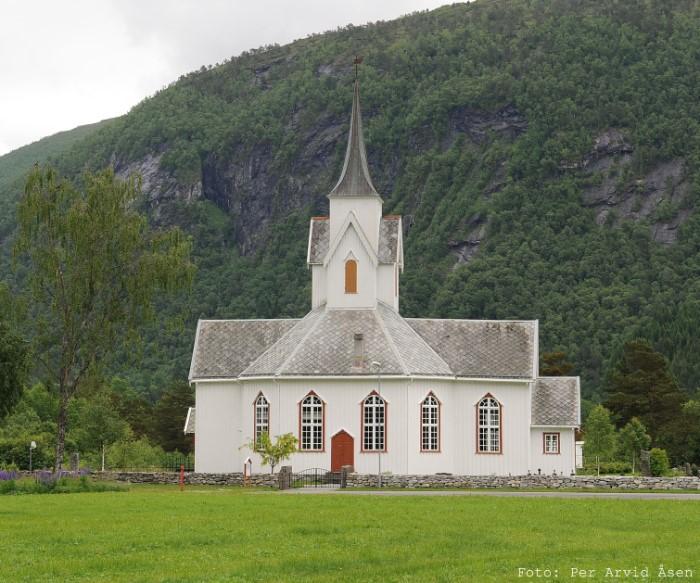 The Church of Sira, also known as the Eresfjord Church, is an octagonal church dating from 1869 and built of wood. Until about 1709, a stave church probably stood here, but because of its very poor condition, it was replaced by a new wooden church in the shape of a cross. Throughout the 19th century, this church was too small and in need of repair. In 1868-1869 the octagonal church was erected in its place.