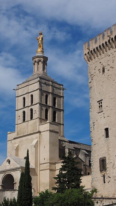 Dès 1336, Giacomo Stefaneschi, le cardinal de Saint-Georges passe commande à Simone Martini — le plus gothique des peintres italiens, considéré comme le chef de file de l’École de Sienne — des fresques du porche de Notre-Dame-des-Doms. Martini, qui a été l’élève de Duccio de Buoninsegna, vient sur place avec son épouse Giovanna et son frère Donat. Les fresques sont achevées avant la mort du commanditaire en 1343.