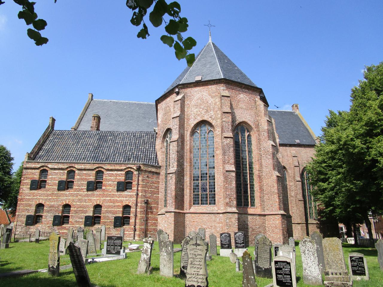 The Gertrudis church in the Frisian town of Workum is a late Gothic brick church, founded in 1480 and resumed in 1523. The free-standing church tower was built after 1523 but remained unfinished. However, in 1613, an onion dome was applied to the second section of the tower.