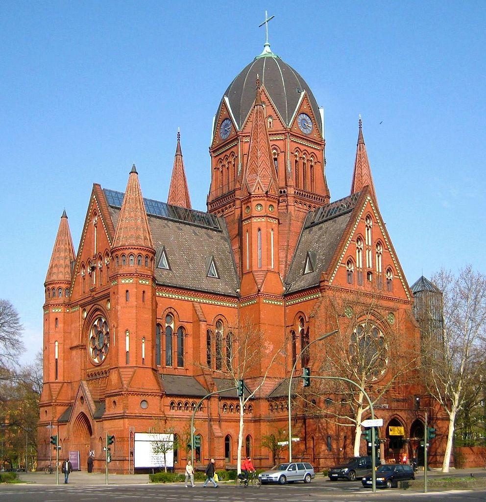 The Holy Cross Church is a Protestant church which was built between 1885 and 1888 according to the plans of the master-builder Johannes Otzen under the supervision of Julius Kleinau. Destroyed by Allied air raids during the Second World War, the church was rebuilt in 1951-1959 in a simplified form.
