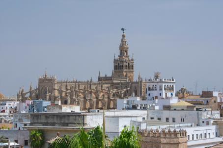 Giralda is the name given to the bell tower of the Cathedral of Santa María de la Sede in the city of Seville. The lower two-thirds of the bell tower corresponds to the minaret of the city's old mosque, dating from the late twelfth century to the Almohad period (1121-1269), while the upper third is a construction superimposed on the Christian period to house the bells. In 1987, the bell tower was added to the World Heritage List along with the cathedral.