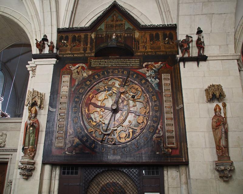 Another small but charming parade can be seen every noon in the chancel of Münster Cathedral. In this case, the Three Wise Men pass in front of the figure of Mary and the baby Jesus, guided by the Star of Bethlehem. Just below the figure of Mary and the Christ Child, the astronomical clock built in 1540 marks the position of the stars, the phases of the moon and the position of the sun in the corresponding sign of the zodiac.