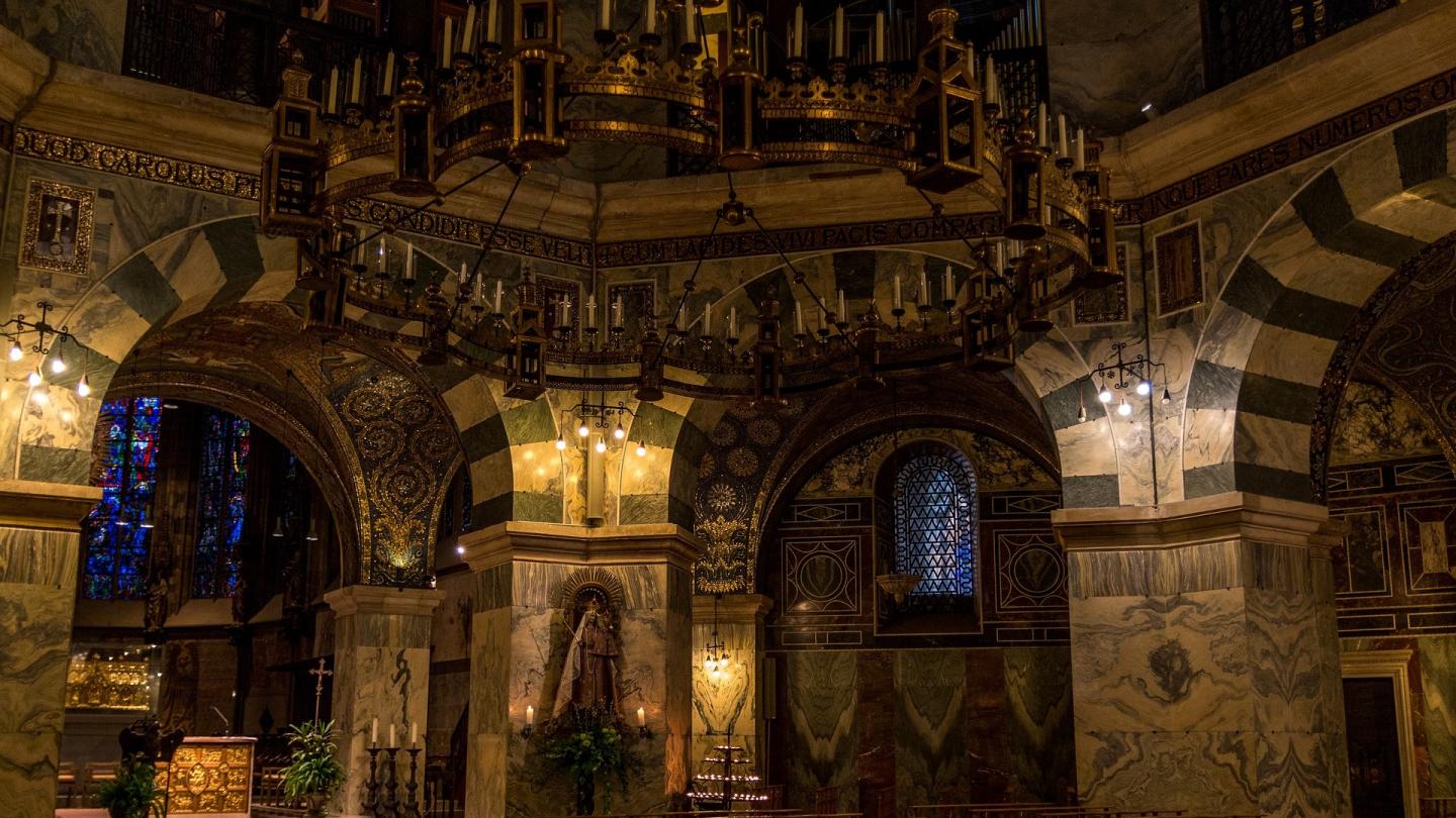 The Palatine Chapel of Aachen was built between 792 and 804 by Odon of Metz (742-814). It was Charlemagne's private chapel in Aachen, which was part of his palatine complex. It contains the remains of Charlemagne and was a place of coronation for about 600 years. In the 21st century, the chapel has been preserved almost intact, despite later additions and major repairs in the 19th century. As part of Aachen Cathedral, it is included in the UNESCO World Heritage List.