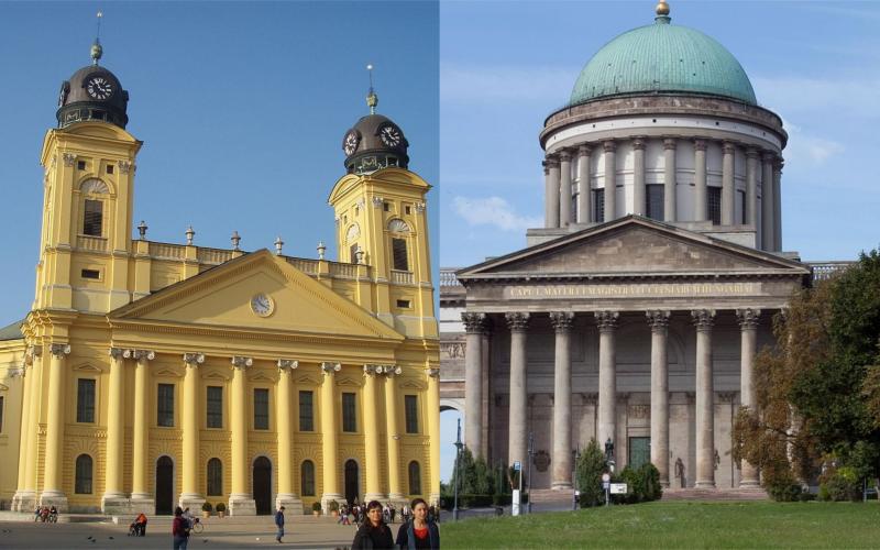Before the First World War, Hungary had a large, religiously divided kingdom, with a predominantly Catholic west and a Calvinist east. Two cities, former capitals of the kingdom, embody these two Hungaries: Esztergom, the traditional seat of the Hungarian Catholic Church, and Debrecen, known as "Calvinist Rome". This religious disparity between the two cities has grown over the centuries with the existence of chronic prohibitions of Catholics in Debrecen and Calvinists in Esztergom. Both built in the first half of the 19th century in the neoclassical style, the basilica of Esztergom and the great church of Debrecen are symbols of the cohabitation of the two religions in Hungary.