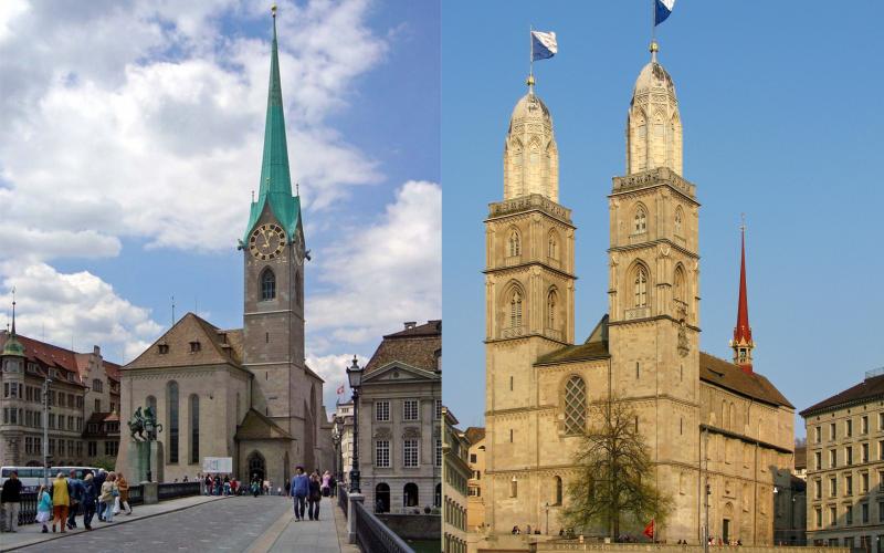 Facing each other on either side of the Limmat, it is easy to imagine the rivalry between the Fraumünster and the Grossmünster, which both define the skyline of Zurich. The two münsters (old German word for "big church") were the abbey churches of important monasteries in medieval Zurich. Both monasteries claimed their superiority over the other as authentic places of veneration for the city's martyrs. The relics of the saints of Zurich, Felix and Regula, were once exhibited by Fraumünster, while the Grossmünster was said to be founded on the burial place of the saints. Therefore, on the feast day of the saints in Zurich, their relics were transported in procession between the Grossmünster and the Fraumünster. The dispute was somehow settled, as Zurich became an important centre of the Reformation in the 1520s, and the abbeys were abolished.