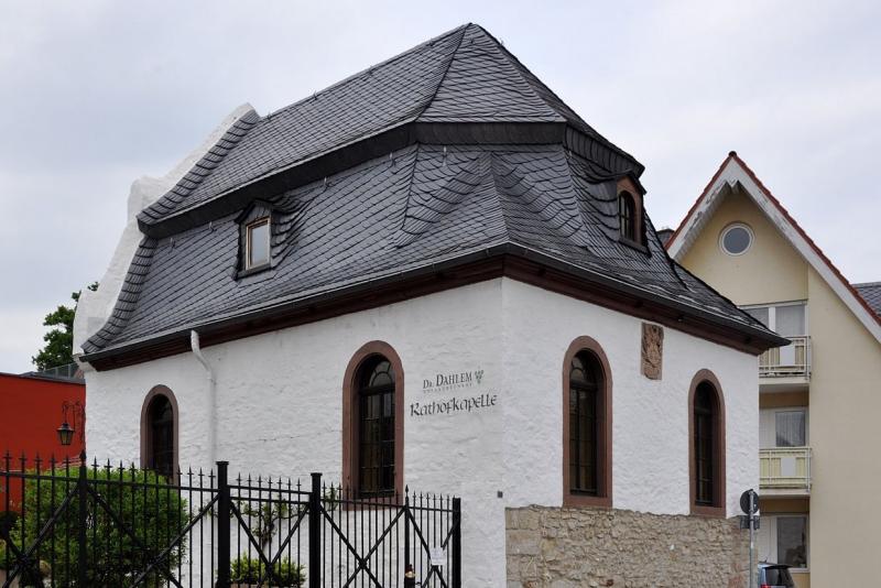 The medieval synagogue (Rathofkapelle) in Oppenheim was used until 1394 when it was sold to Kloster Eberbach. The Jewish community of Oppenheim is first mentioned in an imperial tax list from 1242. After the persecution of 1349, the Jews were expelled for a few years in 1391, which would explain the abandonment of the synagogue at that time. The stone building now serves as a restaurant.